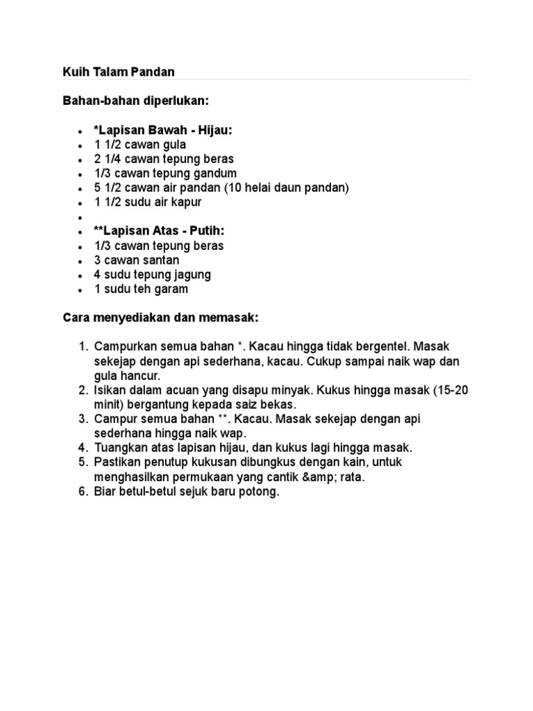Resepi Kuih Talam Suji Pandan Sukatan Cawan Aneka Resepi Mudah Dan Sedap